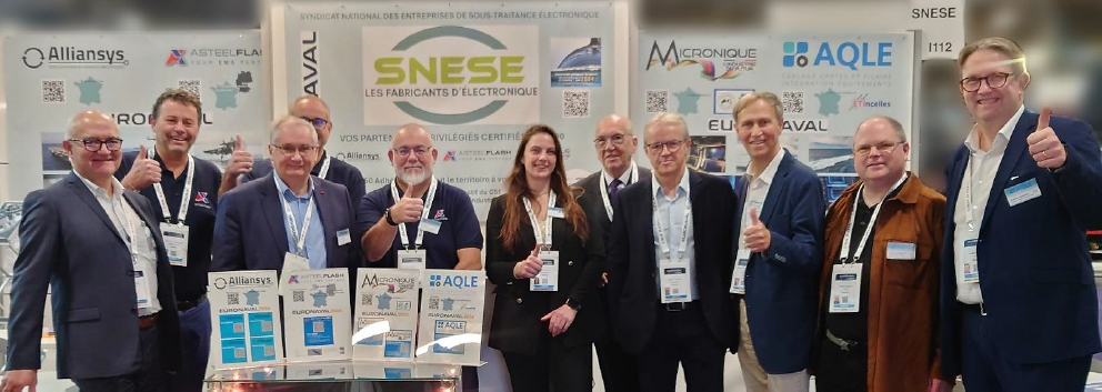 Ces derniers – Alliansys, AQLE, Asteelflash, Micronique – avaient surtout l’habitude de prendre leurs quartiers à EuroSatory ou au Salon du Bourget. En présentant leurs activités à Euronaval, les quatre sociétés « ont finalement toutes apprécié cet événement ». Jouxtant un hélicoptère d’Airbus, un sous-marin drone de Naval Group et le ministère des Armées, les quatre sociétés ont eu l’occasion de rencontrer de « nombreux interlocuteurs du secteur naval et aéronautique-défense pour leur exposer l’importance de l’électronique dans leurs systèmes. De toute évidence, nous avons pu observer sur tous les stands de plus en plus de composants et produits très complexes, robotisés, souvent basés sur des drones volants, de surface ou sous-marins, intégrant une part importante d’électronique dans la valeur de leur réalisation ». Par ailleurs, le Snese souligne l’occasion « de se rencontrer dans un contexte inédit et d’échanger avec leurs homologues car les sociétés présentes étaient très complémentaires, que ce soit dans leurs structures (de la TPE au grand groupe) ou dans leur offre commerciale et technique ».