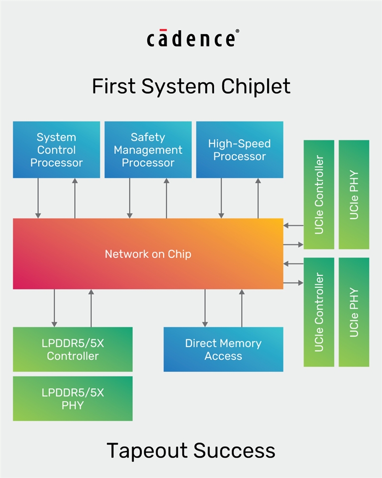 Comme beaucoup, Cadence mise sur les chiplets pour faire face à la complexité croissante des puces et augmenter leurs rendements de production. L’Américain vient ainsi de prototyper un composant mêlant des cœurs de traitement numérique (dédiés à l’application, à la gestion système et à la sûreté fonctionnelle), des contrôleurs mémoire LPDDR5/5X (y compris la couche PHY), un bloc d’accès mémoire direct et des interfaces compatibles UCIe (Universal Chiplet Interconnect Express). Le tout est relié à une matrice de connexion centrale Janus. Le composant répond à l’architecture CSA (Chiplet System Architecture) d’Arm et délivre jusqu’à 64Go/s côté UCIe et 32Go/s côté Dram.