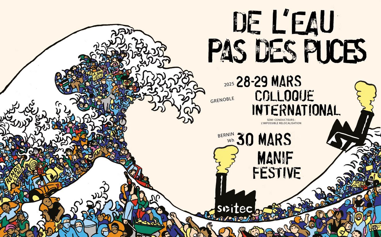 « De l’eau, des terres, pas des puces », est le slogan version 2025 du collectif StopMicro. Il s’associe cette année au mouvement Les Soulèvements de la terre pour organiser un week-end « contre l’extension de STMicroelectronics et Soitec » dans la vallée de Grenoble. Cette mobilisation aura lieu les 28, 29 et 30 mars.