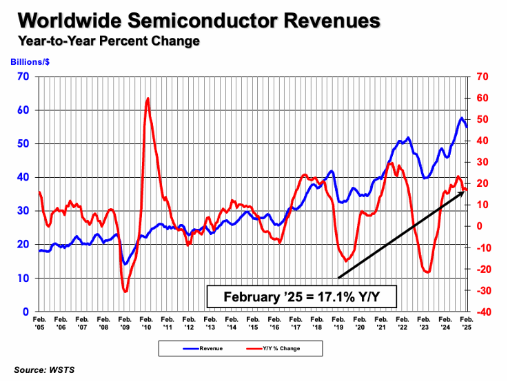 « Malgré une légère baisse des ventes d’un mois sur l’autre, l’industrie mondiale des semi-conducteurs a atteint son plus haut niveau de ventes mensuelles pour un mois de février, entraînant une forte croissance d’une année sur l’autre », a déclaré John Neuffer, président et CEO de la SIA.