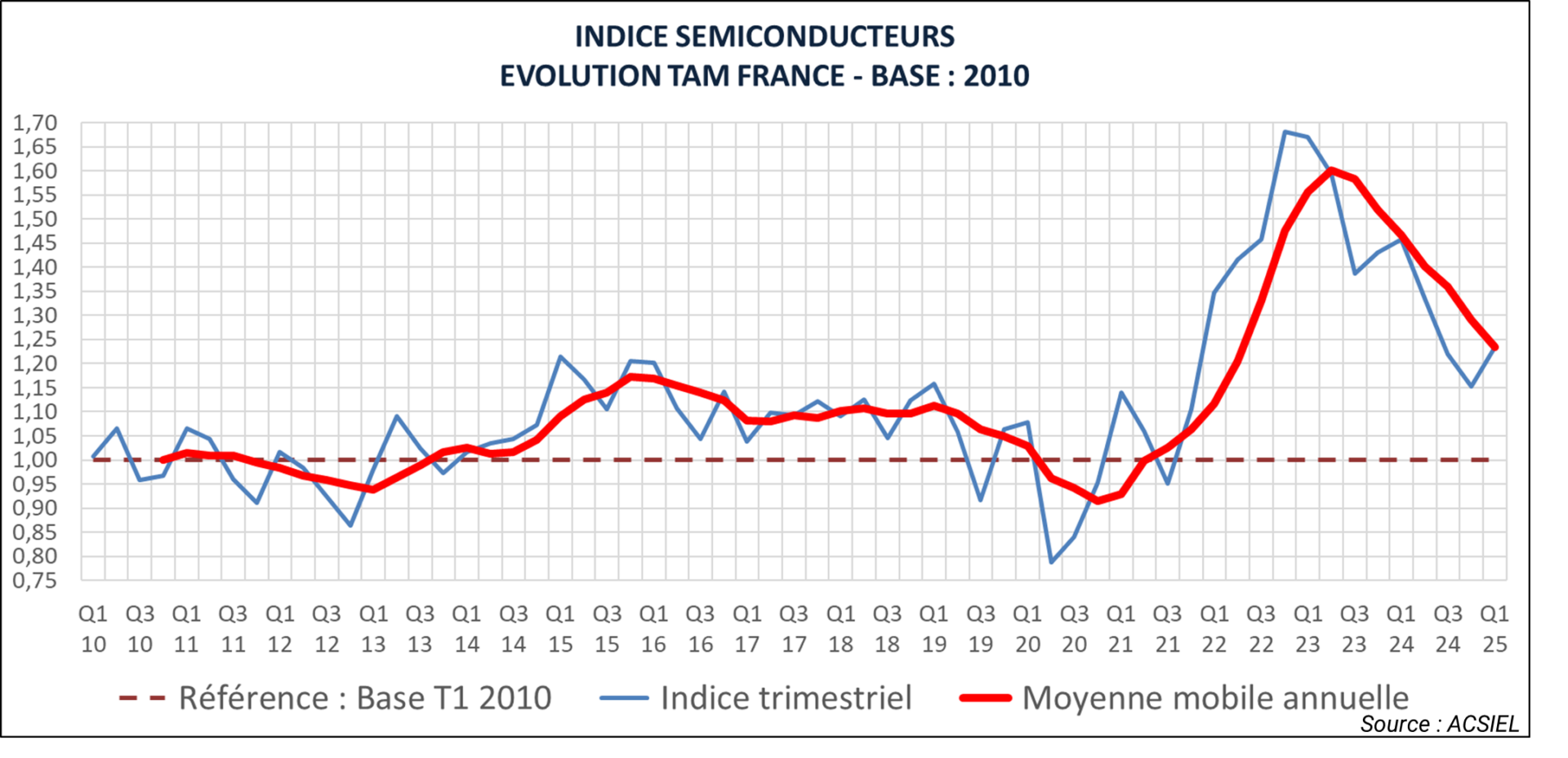 Le marché national des puces a renoué avec la croissance au 1er trimestre 2025 ! Il affiche une hausse de 7% en variation séquentielle, à 531M€, selon Acsiel Alliance Electronique. En revanche, en glissement annuel, le marché français est en recul de 15%.