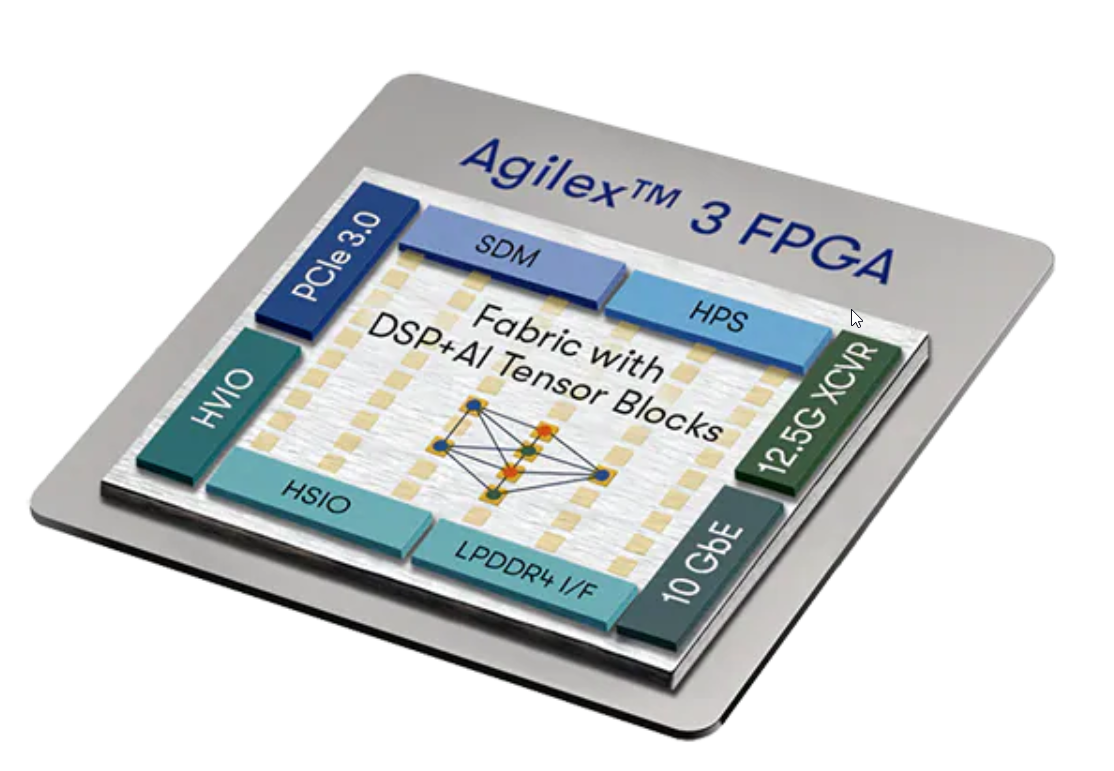 De leur côté, les séries FPGA et SoC Agilex 3 d’Altera utilisent la technologie de matrice de cœur Hyperflex Gen 2. Ces composants sont dotés d’émetteurs-récepteurs haute vitesse, d’une prise en charge de la mémoire LPDDR4 et du boîtier BGA compact à pas variable d’Intel. Équipés de deux processeurs Arm Cortex-A55 et de périphériques renforcés, ils offrent des blocs tenseurs IA intégrés à la matrice FPGA pour une accélération dédiée de l’IA et du ML. Leurs applications sont variées : les usines et les villes intelligentes, l’IoT, la santé, et l’électronique grand public avancée, incluant les drones.