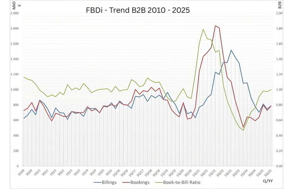 La Fachverband der Bauelemente Distribution, autrement dit l‘association de la distribution allemande de composants (FBDi), a enregistré une – timide – progression des ventes de 1,2% au troisième trimestre de 2025 par rapport à la même période de 2024. Certes, cette bonne nouvelle apparaît à la suite de trois années de contraction, mais le soulagement n’est pas encore de mise, et le « travail ne fait que commencer ! », estime l’association.
