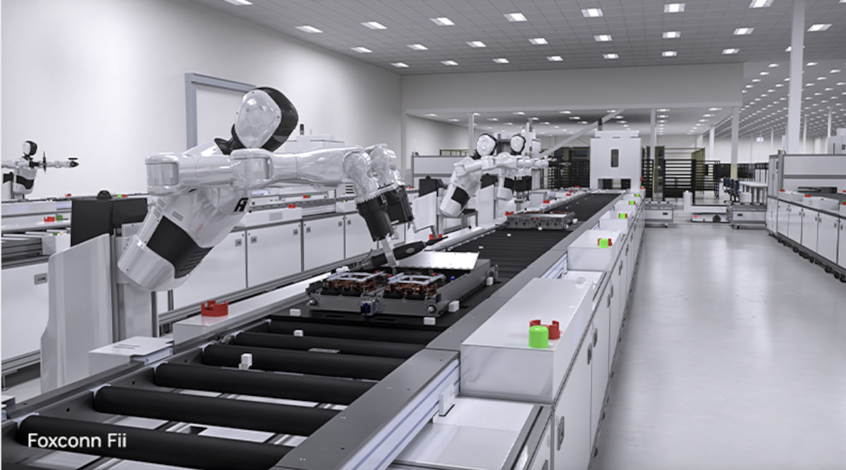 Foxconn a annoncé le déploiement de robots humanoïdes dans son usine de Houston, qui produit des serveurs d’IA pour Nvidia. Le déploiement doit avoir lieu d’ici six mois environ. Ces robots, équipés du modèle Nvidia Isaac GR00T N, contribueront à accélérer la production ; mais cette usine servira surtout de vitrine technologique pour les deux partenaires, qui ambitionnent de créer « une usine intelligente de référence mondiale en matière d’IA ».