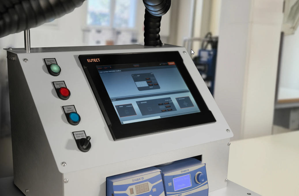 Les possibilités offertes par l’EMI s’étendent désormais aux futures applications des cobots : « En mode apprentissage, je peux me déplacer manuellement sur le PCB jusqu’aux zones que le cobot doit atteindre. Pour ce faire, je positionne le cobot à l’endroit précis. Je vérifie ensuite son positionnement exact sur l’écran. Si celui-ci est correct, il est transmis à l’EMI. Cela me permet de programmer la séquence de processus étape par étape », détaille Lars Iwers, le responsable marketing et ventes chez Eutect. En outre, grâce à l’EMI, les nouveaux processus de soudage peuvent également être mis en œuvre avec d’autres solutions de cobots et de robots.