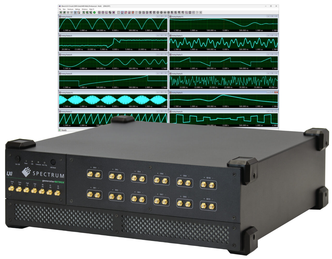 Netbox, la gamme d’instruments pilotés via Ethernet de l’Allemand Spectrum Instrumentation, compte désormais près de cinquante membres avec l’ajout des dix générateurs de formes d’onde arbitraires DN6.63x. Ces appareils offrent 6 canaux opérant à 10Géch./s ou 12 canaux à 5Géch./s, chaque canal disposant de son propre convertisseur numérique-analogique 16 bit. La marge dynamique (SFDR) atteint 90dB, le rapport signal sur bruit (SNR) 64dB et la profondeur de mémoire interne 48Géch. La densité spectrale de bruit se limite, elle, à -150dBm/Hz. L’option DDS (direct digital synthesis) permet à un canal de générer jusqu’à 64 ondes sinusoïdales ajustables individuellement en fréquence, amplitude et phase.