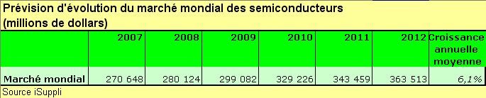 Après bien d’autres, iSuppli vient à son tour de revoir à la baisse ses prévisions concernant l’évolution du marché mondial des semiconducteurs pour cette année et les suivantes. Le cabinet d’analystes américain parie