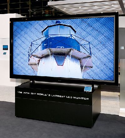 Avec une diagonale de 108 pouces (2,75 mètres), le nouveau modèle d’écran LB-1085 de Sharp Electronics est le plus grand écran à cristaux liquides actuellement disponible sur le marché. Il est