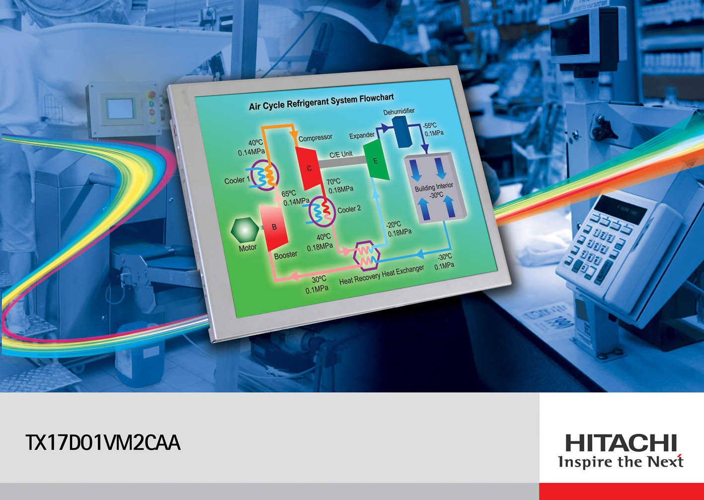 TX17D01VM2CAA d’Hitachi Conçu pour les applications industrielles, ce LCD-TFT VGA de 6,5 pouces se caractérise par une luminance typique de 600 cd/m2 et un contraste de 600:1 et est spécifié pour une durée de vie de 70 000 heures.