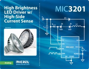 Le MIC3201 de Micrel peut commander jusqu’à quatre Del de 1 A agencées en série, et ce avec un rendement supérieur à 90 %. Avec le MIC3201, Micrel introduit un pilote de Del haute luminosité avec détection de courant côté haut. Ce circuit constitue le premier élément d’une nouvelle série de drivers notamment destinés aux lampes à Del au format MR16.