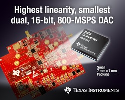 Le DAC3283 de Texas Instruments se distingue aussi par son excellente linéarité. Destiné aux communications sans fil, aux radios logicielles, aux équipements de test et mesure, le double CNA 16 bits à interpolation de Texas Instruments est caractérisé par une cadence d’échantillonnage de 800 Méch./s et une excellente linéarité. Ainsi, à 200 MHz, la distorsion d’intermodulation du troisième ordre du DAC3283 est de -75 dBc. A pleine vitesse, sa consommation est de 1,3 W.