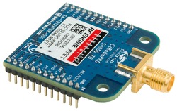 De l’autre, le Si1000 combine dans un boîtier de 5×7 mm : un cœur de processeur 8 bits de type 8051 à ultra basse consommation, 64 Ko de flash, un CAN de résolution 10 bits et un émetteur-récepteur (dit EZRadioPRO) fonctionnant dans les bandes ISM situées sous le gigahertz. Le budget de liaison est de 140 dB, sans ajout d’éléments actifs externes.