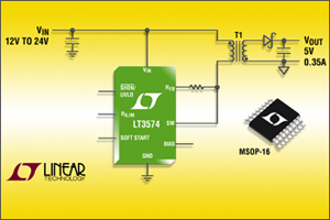 Série LT3574 de Linear Technology Ce régulateur à découpage ne requiert ni photocoupleur, ni troisième enroulement, ni transformateur d’isolement dans la boucle de régulation.