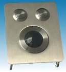 Destinée aux applications industrielles et aux bornes d’information, cette boule de 25 mm de diamètre est intégrée dans une platine inox de 82 x 67 x 25 mm équipée de deux boutons tactiles.