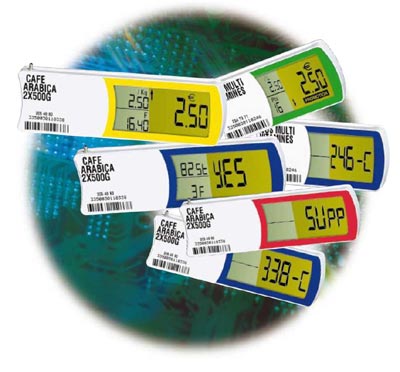 À côté des étiquettes RFID, les magasins s’équipent de plus en plus en étiquettes électroniques de gondoles (EEG). Il s’agit d’un afficheur à cristaux