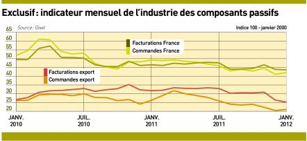 Au premier trimestre 2012, la tendance des commandes a été orientée à la baisse, aussi bien en france qu’à l’export. sur 3 mois, elle a été de 14% en france et de 20% à l’export. le book to bill france à 3 mois était de 0,97. par familles de produits, les baisses enregistrées sont de