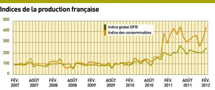 Pour l’indice global GFIE, la base 100 est en 1995. Celle de l’indice des consommables débute en janvier 2001 (les consommables entrent eux-mêmes dans le calcul de l’indice global GFIE).