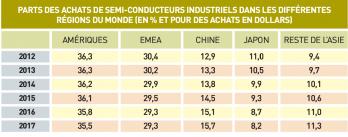 Même si ses achats reculent (35,5% prévus en 2017), cette région du monde restera la première région pour les achats de semi-conducteurs professionnels.