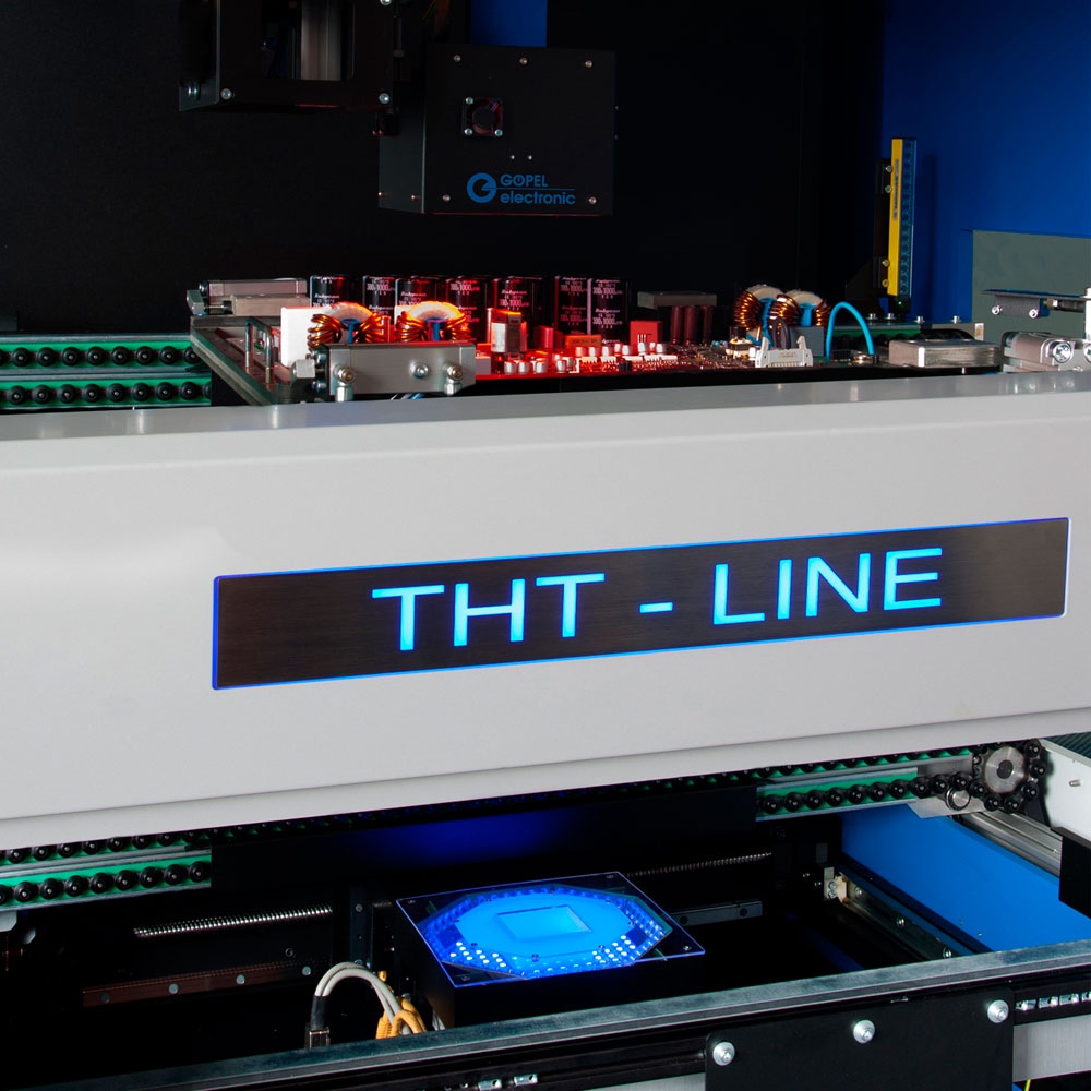 Destinée à l’inspection de cartes équipées de composants traversants, cette machine consiste en un matériel AOI OptiCon THT-Line à deux modules AOI : l’un sert pour l’inspection du recto de la carte, et l’autre, pour l’inspection du verso. Ces deux modules fonctionnent de manière indépendante. Chaque module inclut une caméra, les optiques d’accompagnement et un système d’éclairage; sa longueur est de 200 mm.