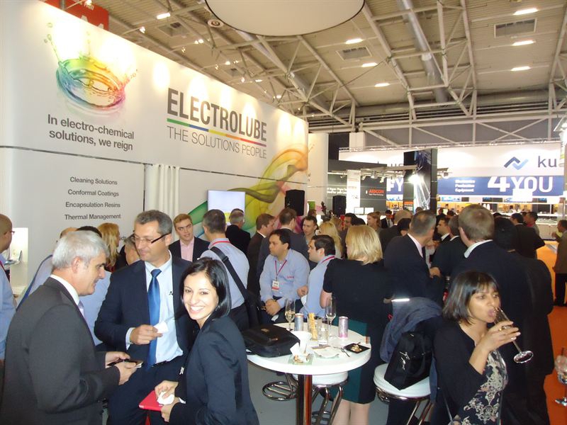 La photo présente le stand Electrolube à Productronica (Munich, du 12 au 15 novembre 2013).