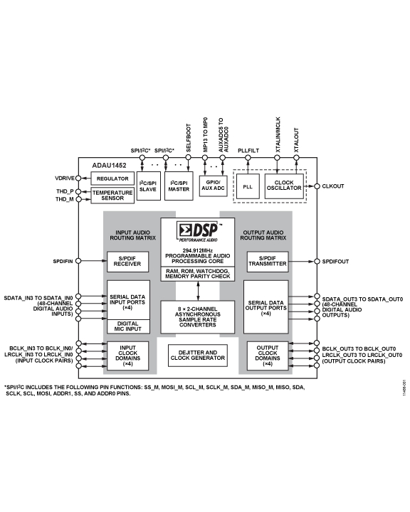 Analog Devices lance l’ADAU1452, le dernier-né de sa famille de processeurs audio SigmaDSP qui s’avère capable d’exécuter trois fois plus d’algorithmes audio que ses prédécesseurs. Il embarque pour cela un coeur DSP 32 bits 295 Mips, des convertisseurs de fréquence d’échantillonnage, des boucles à verouillage de phase et de nombreuses interfaces audio. L’ADAU1452 est encapsulé en boîtier LFCSP 72 contacts et vendu 11,99 $ pièce par quantités de 1000.