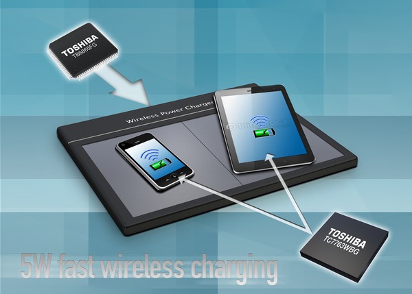Composé du TB6865FG côté émission et du TC7763WBG côté réception, le jeu de circuits du japonais autorise le libre positionnement de deux appareils mobiles sur un tapis de charge.