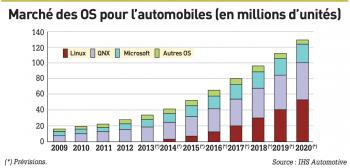 Avec Linux qui deviendrait l’OS majoritaire dans les systèmes d’infodivertissement automobiles d’ici à 2020, IHS parie sur la victoire des plates-formes logicielles open source par rapport aux OS propriétaires tels que ceux de QNX et Microsoft. Avec la promesse d’un coût réduit et d’une offre multifournisseur. “Une autre raison du succès à venir de Linux est le souhait de l’industrie automobile de maîtriser et de mettre en place sa propre architecture systeme et de la faire évoluer aisément, un plus que ne peuvent offrir les plates-formes propriétaires”, précise M. Juliussen.