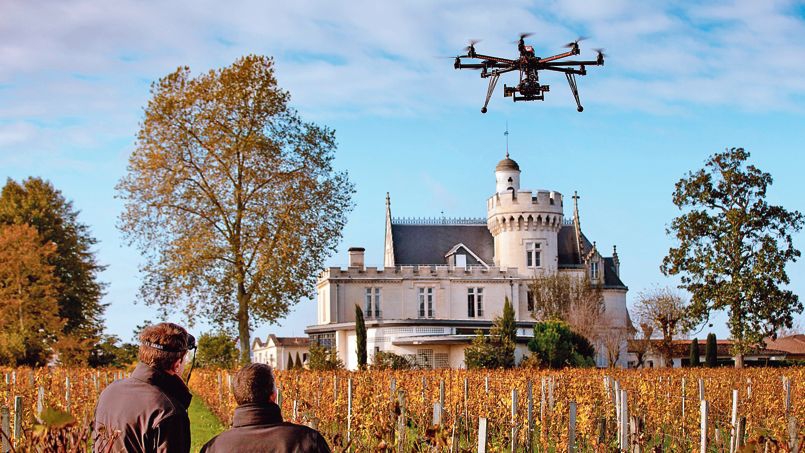 Les vignobles Bernard Magrez viennent de s’équiper de drones pour surveiller, au moyen d’une caméra embarquée, une vingtaine d’hectares de vignes en deux heures. Ces drones, qui représentent un investissement de 50 000 euros, permettent des gains de temps importants. Ainsi, pour une exploitation de 120 hectares, la cartographie des pieds de vigne mortss qui nécessitait l’emploi de 8 personnes pendant une semaine, pourra être réalisée en une demi-journée.