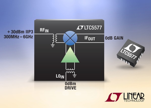 Apte à transposer un signal RF en un signal FI jusqu’à 1,5 GHz, le LTC5577 de Linear Technolgy affiche un point d’interception du troisième ordre en entrée (IIP3) situé à +30 dBm.