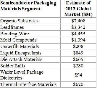 Le marché mondial des matériaux destinés à l’encapsulation a égalé 19,3 milliards de dollars en 2013, selon une étude menée par Semi et TechSearch International, étude intitulée “Global Semiconductor Packaging Materials Outlook – 2013/2014 Edition”.