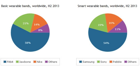 Le cabinet prévoit que 23 millions de montres connectés devraient être vendues en 2015 et 45 millions en 2017, contre 11 millions de bracelets électroniques en 2015 et 13 millions en 2017. Cette inversion de tendance est principalement due aux fonctionnalités plus riches offertes par les montres connectées alors que les bracelets électroniques ne permettent que d’observer son niveau d’activité sportive ou de suivre son alimentation.