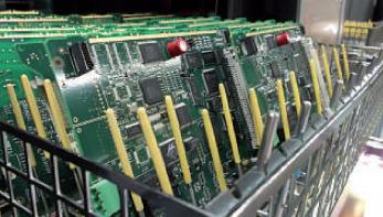 Requis par l’aérospatial, le militaire et le médical, le nettoyage des cartes électroniques élimine les résidus des flux de brasage ainsi que les contaminants, tous produits susceptibles de causer une défaillance de fonctionnement. L’offre en machines progresse: elle inclut aujourd’hui le recyclage de l’eau de rinçage et de la solution nettoyante.