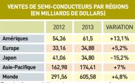 Nouveau record absolu pour les ventes mondiales de semiconducteurs qui ont atteint 305,6 milliards de dollars en 2013, en hausse de 4,8% par rapport à 2012, selon le WSTS.