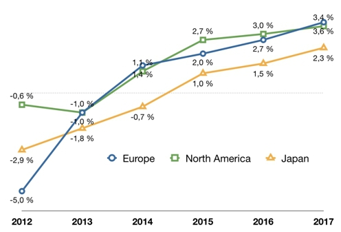 Croissance annuelle moyenne de 1,7% pour l’Europe et de 1,9% pour l’Amérique du nord