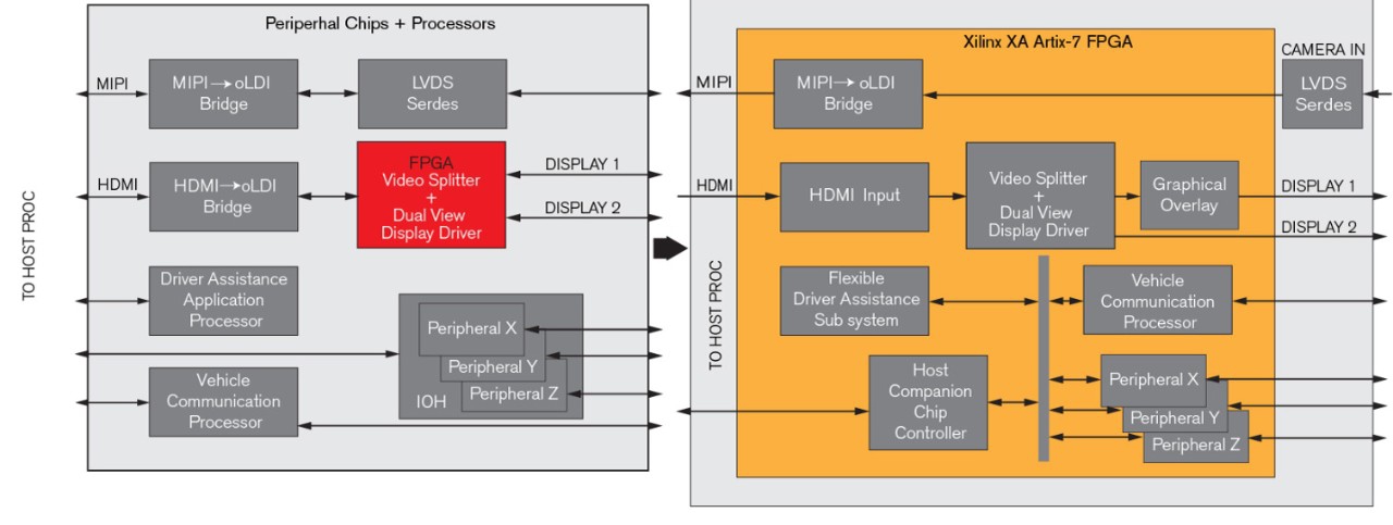 Xilinx lance les XA Artix-7, une famille de quatre FPGA (XA7A35T, XA7A50T, XA7A75T et XA7A100T) optimisés pour les applications automobiles. Conformes à la norme AEC-Q100, ces circuits visent par exemple la conduite assistée (ADAS), l’infotainment et l’information au conducteur. Ils embarquent de 30 à 101 milliers de blocs logiques, 285 entrées-sorties et 264 GMAC de puissance de calcul DSP. Les XA Artix-7 sont fabriqués en technologie Cmos 28 nm et encapsulés dans des boîtiers aussi petits que 10×10 mm.
