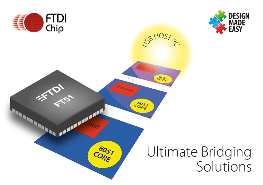 FTDI Chip lance le FT51, second membre de sa famille de microcontrôleurs à coeur 8 bits 8051 48 Mips. Il se distingue par la présence d’un concentrateur USB accompagné de ports I²C et SPI, de quatre canaux de conversion numérique-analogique et analogique-numérique ou encore de modulateurs PWM 16 bits. Alimenté sous 3,3 V, le FT51 consomme 8 mA en mode actif et 70 µA en mode veille.