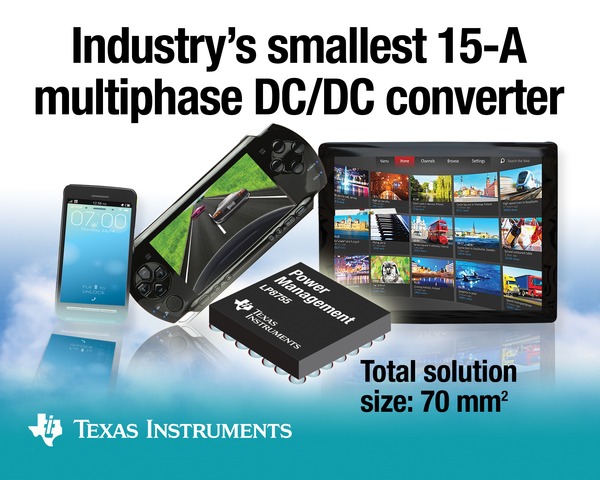 Le convertisseur DC-DC multiphase LP8755 de Texas Instruments est un modèle abaisseur de tension à six coeurs, apte à fournir 15 A aux processeurs d’application des smartphones, des tablettes et autres produits portables. Incluant les Fet, le composant est encapsulé dans un petit boîtier de 3×2,9×0,4 mm. La solution complète, avec condensateurs et inductances, se contente quant à elle de 70 mm² sur le circuit imprimé.