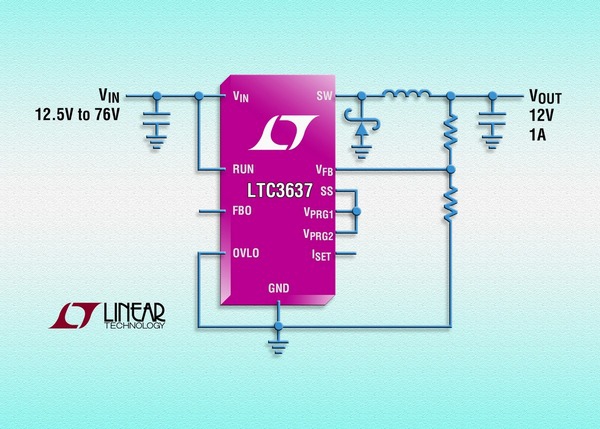 Acceptant une tension d’entrée comprise entre 4V et 76V, le LTC3637 de Linear Technology se contente de 12µA au repos.
