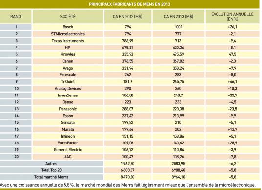 S TMicroelectronics dominait le marché des microsystèmes ces der nières années, fort de sa mainmise sur les Mems destinés aux appareils grand public, à commencer par les accéléromètres