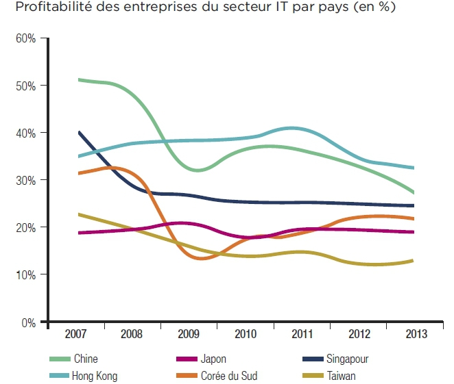 A Hong Kong, cette dépendance est accrue par le fait que l’ensemble de l’industrie hongkongaise est désormais délocalisée en Chine, c’est notamment vrai dans le secteur IT / électronique. Quant à Taïwan, les entreprises du secteur électronique y sont de taille plus importante que leurs homologues hongkongais et situées plus en amont dans la chaîne de production. Elles sont très dépendantes du niveau d’activité de leurs donneurs d’ordre, eux-mêmes très affectés par le rythme de la demande domestique (Chine) et à l’exportation (Etats-Unis, Europe, et de plus en plus Asie).