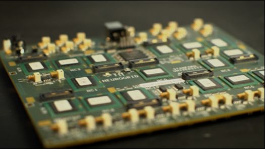 Ce qui a abouti à la réalisation d’une carte électronique de surface 16,5×19,1cm2, la Neurogrid. Reposant sur 16 circuits intégrés Neurocore simulant chacun 65536 neurones, la Neurogrid fonctionne comme un mini-cerveau humain.