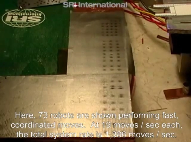 Cet essaim de mini-robots peut se déplacer très précisément et très rapidement – jusqu’à 35 cm/s – sur des circuits imprimés pour assembler à échelle industrielle des cartes électroniques.