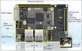 Cette monocarte de petit format dont le module processeur est directement soudé sur le circuit imprimé, réalise une économie de connectique qui permet de proposer une solution de développement d’applications industrielles sous Linux à un prix très bas.