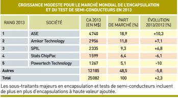 E n 2013, le marché de l’encapsulation et du test de semi-conducteur a progressé de 2,3% à 25,1 Md$.