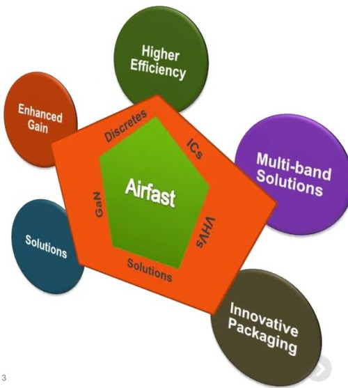 En particulier, la société a annoncé des transistors LDMOS 28V, pour stations de base cellulaires, affichant un rendement de 50 % et plus dans une configuration Doherty.