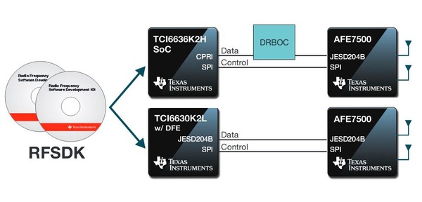 Avec le kit de développement logiciel RFSDK (RF Software Development Kit) Texas Instruments ajoute une brique à son environnement Base Station SoftwarePac. Ce nouvel élément permettra aux développeurs de petites (femto et pico) stations de base de configurer plus rapidement les communications entre les parties radio et bande de base. Un premier appel ou une vérification système seront alors possibles en seulement un jour, là où auparavant il fallait compter sur des semaines ou des mois.