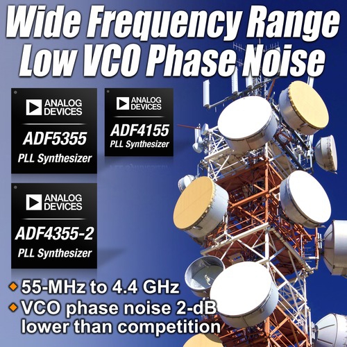 Pour les stations de base cellulaires, les communications de point à point, les radars et les applications de test et de mesure, Analog Devices introduit trois synthétiseurs de fréquence à PLL fractionnaire couvrant une large bande de fréquence. Ainsi, l’ADF5355 prend en charge le spectre compris entre 55 MHz et 14 GHz, alors que l’ADF4355-2 monte à 4,4 GHz seulement.
