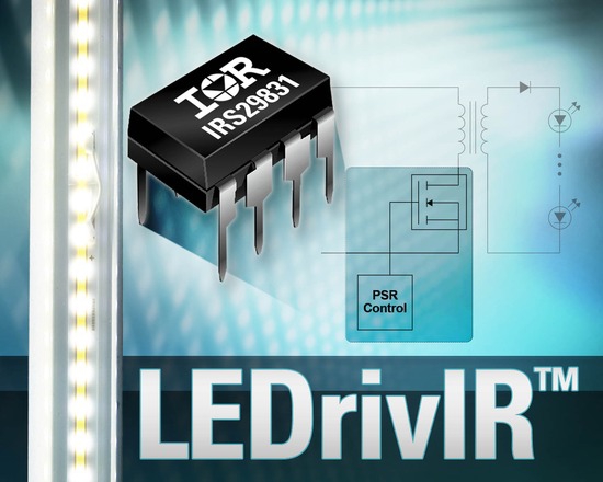 International Rectifier ajoute à son catalogue le circuit de contrôle LEDrivIR IRS29831,optimisé pour les convertisseurs en topologies flyback ou buck-boost, mis en œuvre dans les applications d’éclairage à LED (ampoules, tubes…).