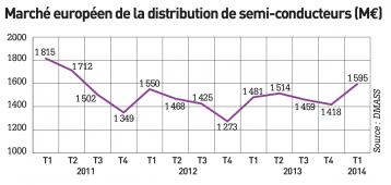 A u premier trimestre 2014, les ventes de semi-conducteurs industriels (hors composants pour PC) ont progressé de 7,7% par rapport au premier trimestre 2013, à 1,6 milliard d’euros, annonce DMASS (