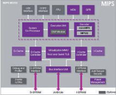 C hez Imagination Technologies, les anciens de Mips Technologies ont présenté cette année les cœurs M51xx, nouvelle entrée de gamme succédant aux cœurs microAptiv et, comme eux, plutôt destinés aux microcontrôleurs. Bâtis sur un pipeline à 5 niveaux délivrant 3,4 Coremark/MHz et 1,57 DMips/MHz et dotés de fonctions DSP (en précision simple ou double) et,